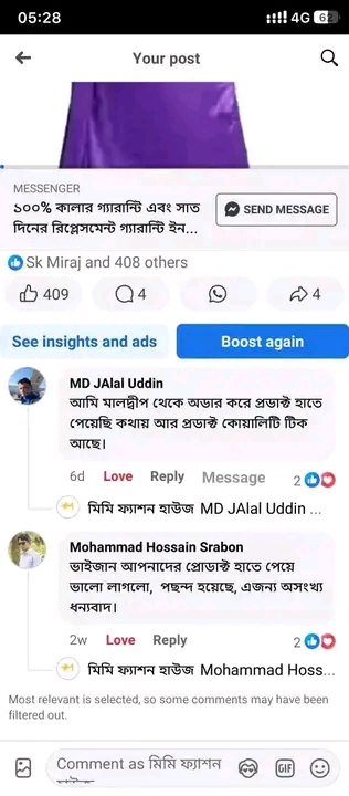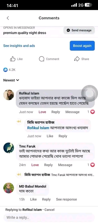 ভাই আপনাদের কাপড় গুলো খুব সফট আমার ওয়াইফ খুব পছন্দ করছে